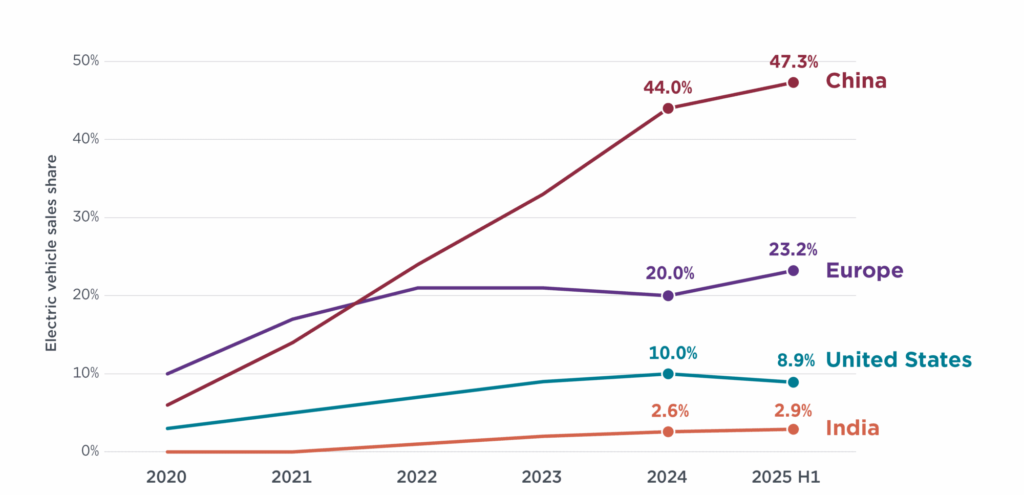 Global EV sales were expected to exceed 20 million units in 2025, though final data is pending. Early‑year momentum was strong, with first‑quarter sales up 35% year‑on‑year across major markets. China maintained incentives for retiring older vehicles, and falling EV prices should lift EVs to about 60% of national sales. In Europe and the United Kingdom, stricter emissions rules will force manufacturers to increase zero‑emission vehicle offerings throughout 2025