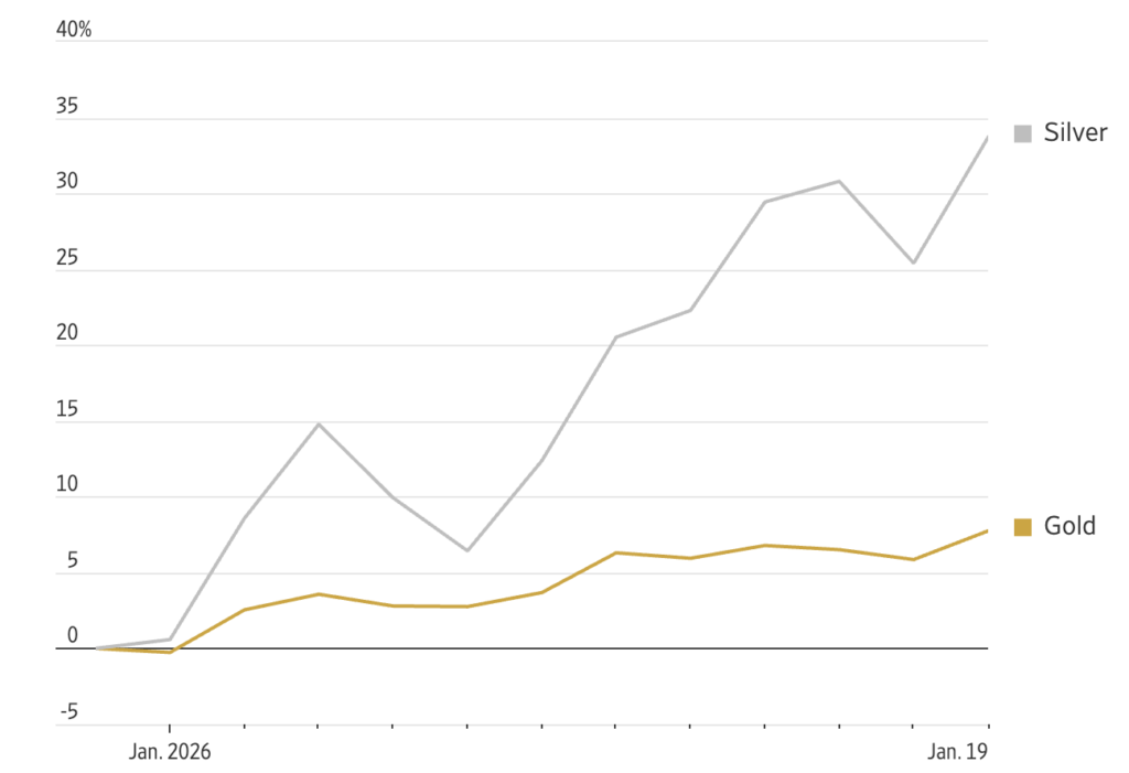 - Sustained strength of gold and silver signals greater demand for safety amid trade tensions and uncertainty, while a reversal or slowing growth would reflect fading risks and greater confidence.