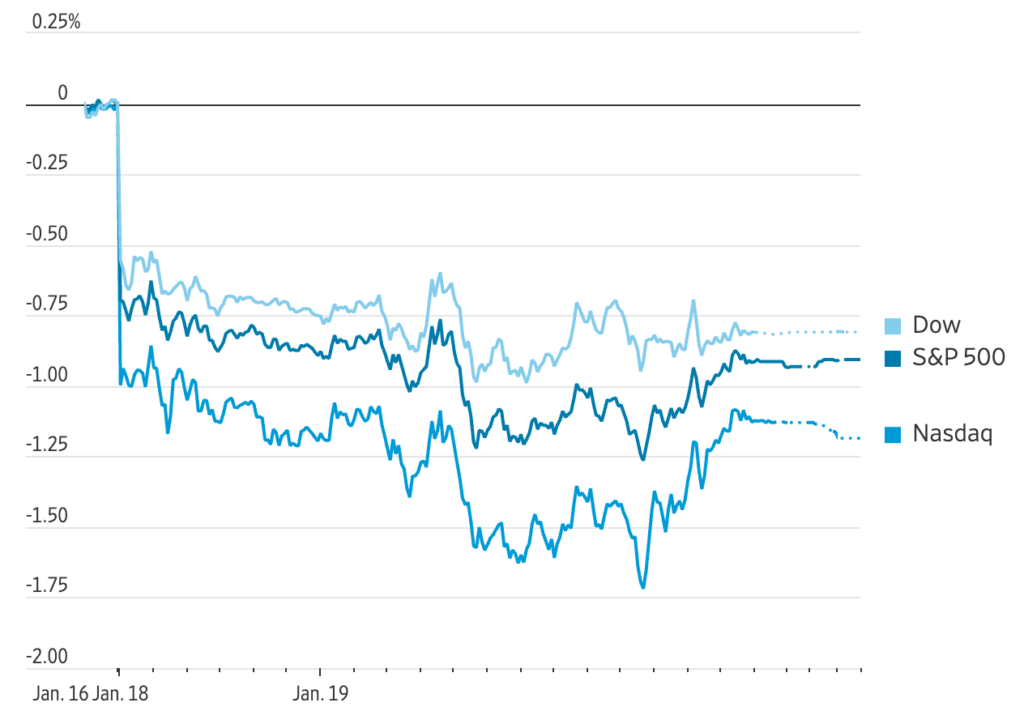 European equities opened lower, showing the first real price discovery. The Stoxx Europe 600 fell by 1.2%, its sharpest decline in over 2 months with the decline being led by trade-sensitive sectors such as autos, luxury goods and industrials. Losses were most pronounced in Denmark, where the OMX Copenhagen 20 shed nearly 3%, reflecting the country’s central role as the sovereign in its dispute with the US over Greenland. Automakers including BMW, Volkswagen and Mercedes-Benz were among the weakest performers, dropping over 3% each, while luxury groups such as LVMH and Kering also sold off heavily.