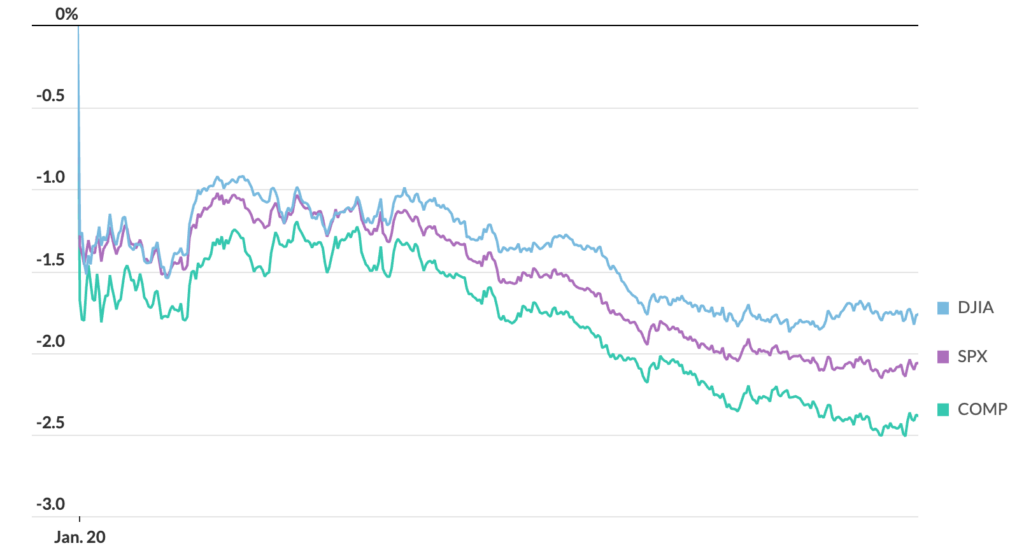 European markets remained under pressure as investors continue to price in renewed trade and geopolitical uncertainty following the tariff threats. On Tuesday, Stoxx Europe 600 fell around 1.3%, with other major benchmarks such as France’s CAC 40 and Germany’s DAX also declining more than 1% as global risk sentiment deteriorated. Export and trade-sensitive sectors such as autos and luxury goods continue to underperform, while defensive areas showed relatively better performance. UK markets slipped as well, with the FTSE 100 down near 1.3%, reflecting broader risk aversion across the region. Denmark’s OMX Copenhagen 20 bucked the broader trend, rising about 1.15% on Tuesday with gains being led by consumer goods, healthcare and industrial sector, showing idiosyncratic drivers and selective positioning by investors as opposed to uniform risk hedging. While uncertainty continues to put pressure on European markets, investors are still trying to distinguish between political noice and local fundamentals.