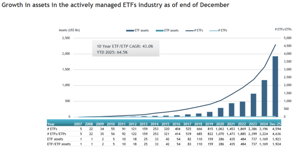 - ETFs and Innovations—ETFs, originally regarded as purely passive investments, have evolved to include a wide range of active and alternative funds, delivering greater diversity to investors.